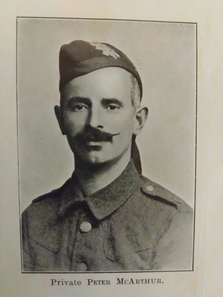 Private Peter McArthur is commemorated on the war memorial. He lies in Terlincthun British Cemetery, Wimille, Boulogne Sur Mer, France. Besides the war memorial, the familial headstone in Comrie’s South Crieff Road Old Cemetery bears his name.
