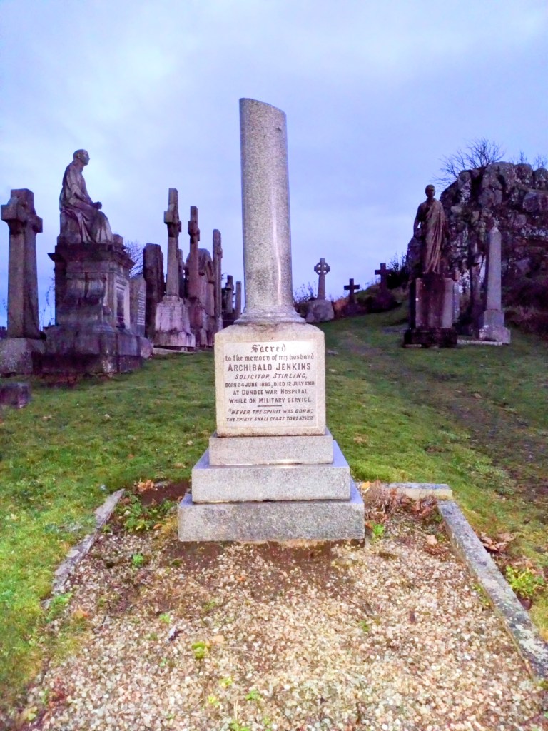 Archibald rests in Stirling Old Town Cemetery. He is the first Spanish flu victim I have encountered whose headstone is an actual broken column. The headstone is cared for by the Commonwealth War Graves Commission and is in excellent condition.