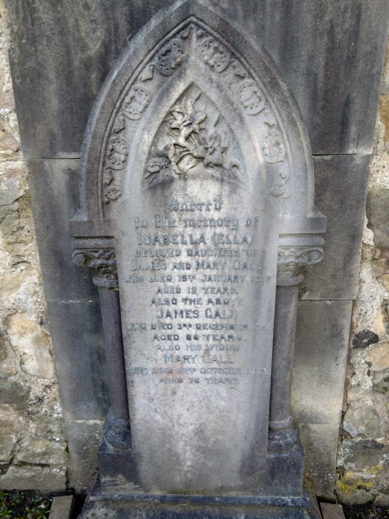 Isabella (also known as Ella) died on the 19th of January 1919 at 11 Hillside Street in Edinburgh’s Canongate district aged only twelve. “Heart failure following epidemic influenza” was cited as her cause of death. She rests on the eastern edge of Rosebank Cemetery in Pilrig. Her attractive memorial is incorporated into the cemetery’s perimeter wall.