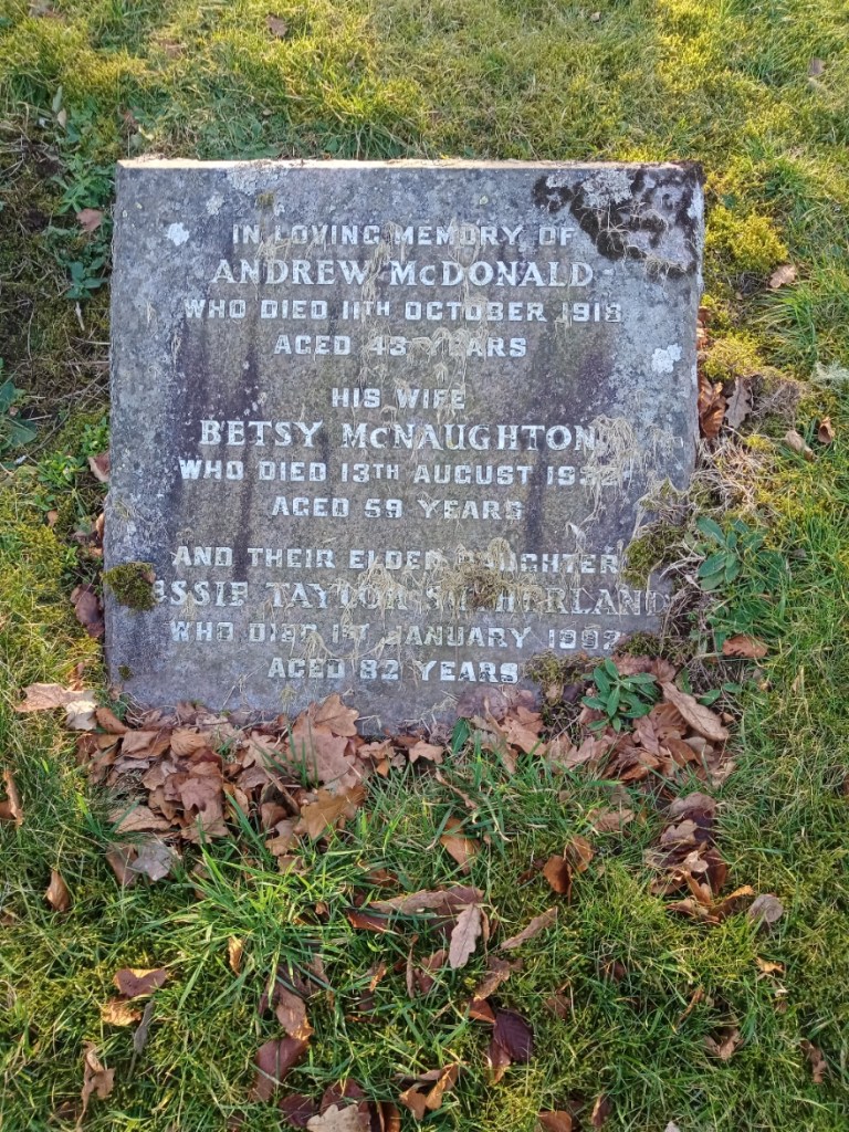 On October 12th, The Strathearn Herald highlighted a concerning surge of influenza cases in the village of Comrie. Andrew McDonald appears to be the only fatality. He rests in Comrie’s South Crieff Road Cemetery on the village’s eastern edge. A plain headstone marks his grave. Though still legible, it has partially subsided into the ground. Andrew died on October 11th at The Limes, Ancaster Lane, aged forty-three, after a five-day battle with influenza.