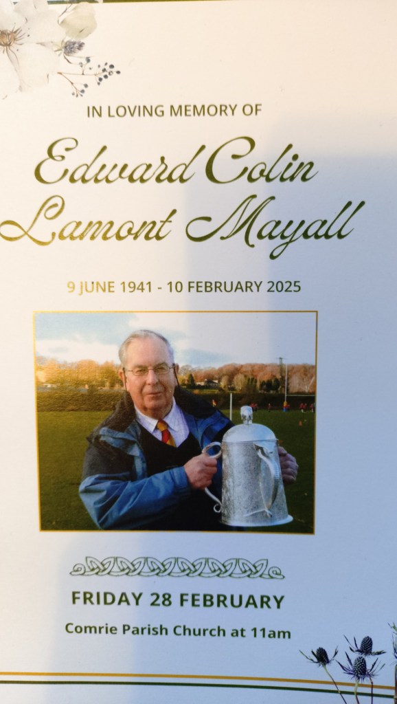 This morning, I attended the funeral of Edward Colin Lamont Mayall, known locally as ‘Colin’. Colin was a renowned local historian, genealogist and author of several books and hundreds of blog posts on the history of Strathearn and Scotland.