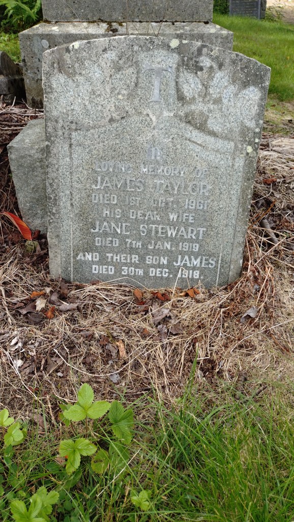 Jane Taylor passed away from influenza and related complications at the age of forty-two on January 7th, 1919, at Easter Fannyside Farm in Cumbernald. Her untimely death came just a week after her son, James, succumbed to the same illness. She is buried alongside her son and husband in Old Cumbernauld Cemetery.