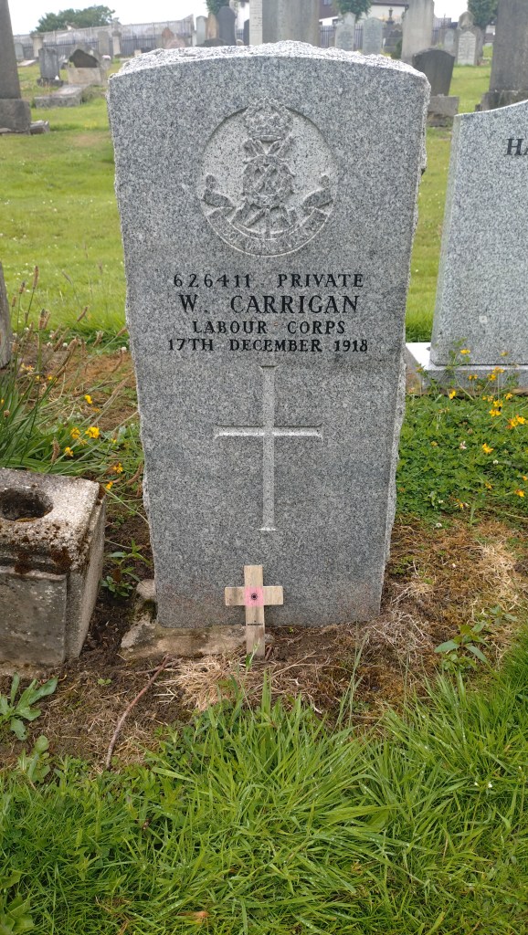 The Electoral Register indicates that William was living at 2 Salmond Place, Edinburgh. This is likely accurate, as he died in Edinburgh; however, his death registration lists 108 Brandon Street, Motherwell, as his usual residence. He passed away three days after the 1918 General Election. Due to his age, he was under twenty-one and thus ineligible to vote. His Sergeant Major registered his death. William’s body was repatriated to his hometown for burial, likely with military honours. Since he was unmarried, the income he earned in the Labour Corps was passed on to John.