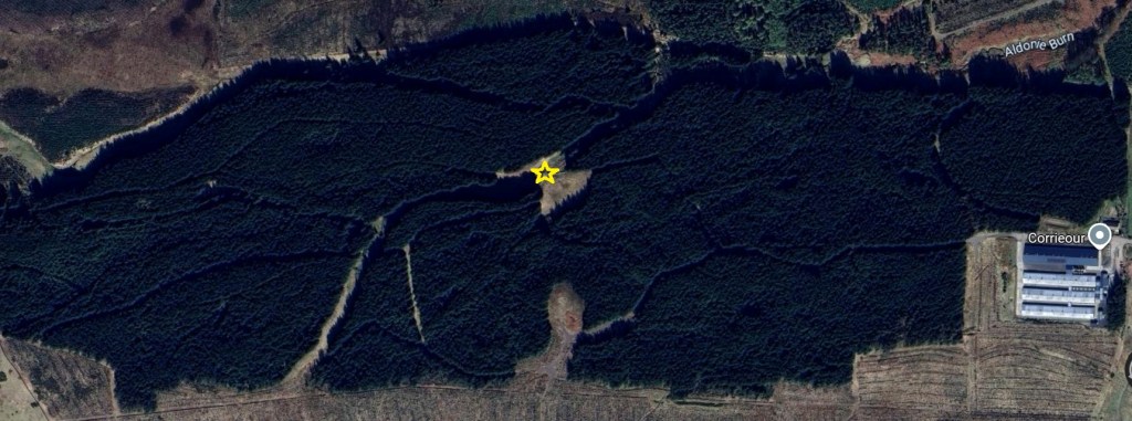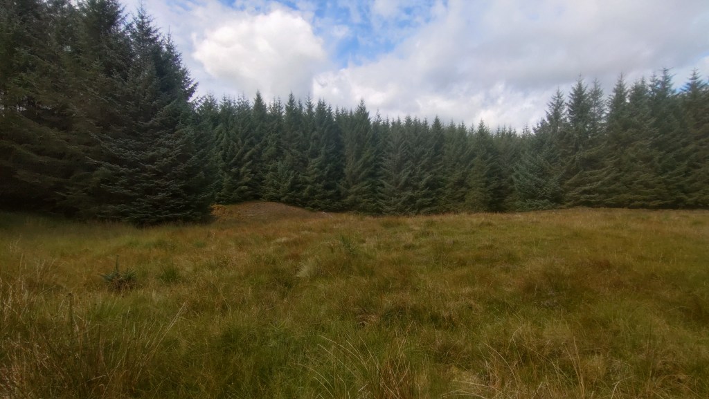 The location of Braco Suicide Graves is uncertain. Ordnance Survey maps pinpoint the site in a clearing within Forestry Commission woodland north of Braco, west of Corrieour. Access is via a track that passes the farm, through a gate, and into the woods. The track ends near the edge of the woodland. Those wishing to proceed can either follow one of the unplanted pathways between the trees (wellies are advised, as the ground is highly marshy and waterlogged). As per superstition, the supposed graves are located on the boundary between the historical parishes of Adroch and Muthill. Sources I consulted before visiting confirm that the Forestry Commission deliberately left the land unplanted to avoid disturbing the graves.