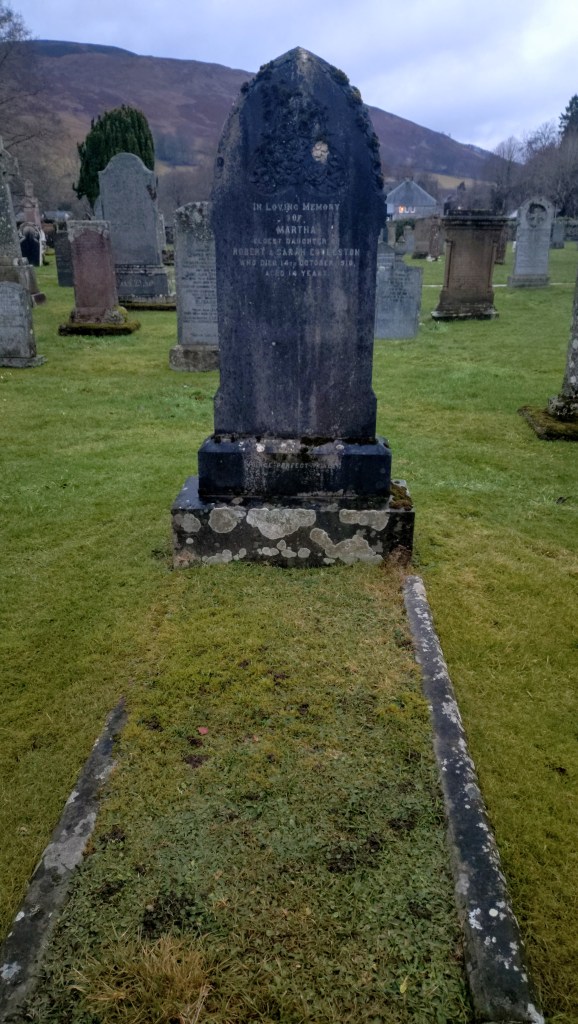 I believe the family relocated to Blair Atholl after Robert accepted a job on the Duke of Atholl’s estate. On Martha’s death registration, his occupation is listed as “wood contractor.”